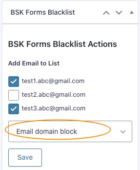 Starting from the Pro version 4.3, a new section named "BSK Forms Blacklist Actions" has been added to assist you in managing your email lists directly from your form submissions. This feature allows you to easily block or allow specific email addresses, helping you prevent spam submissions effectively.